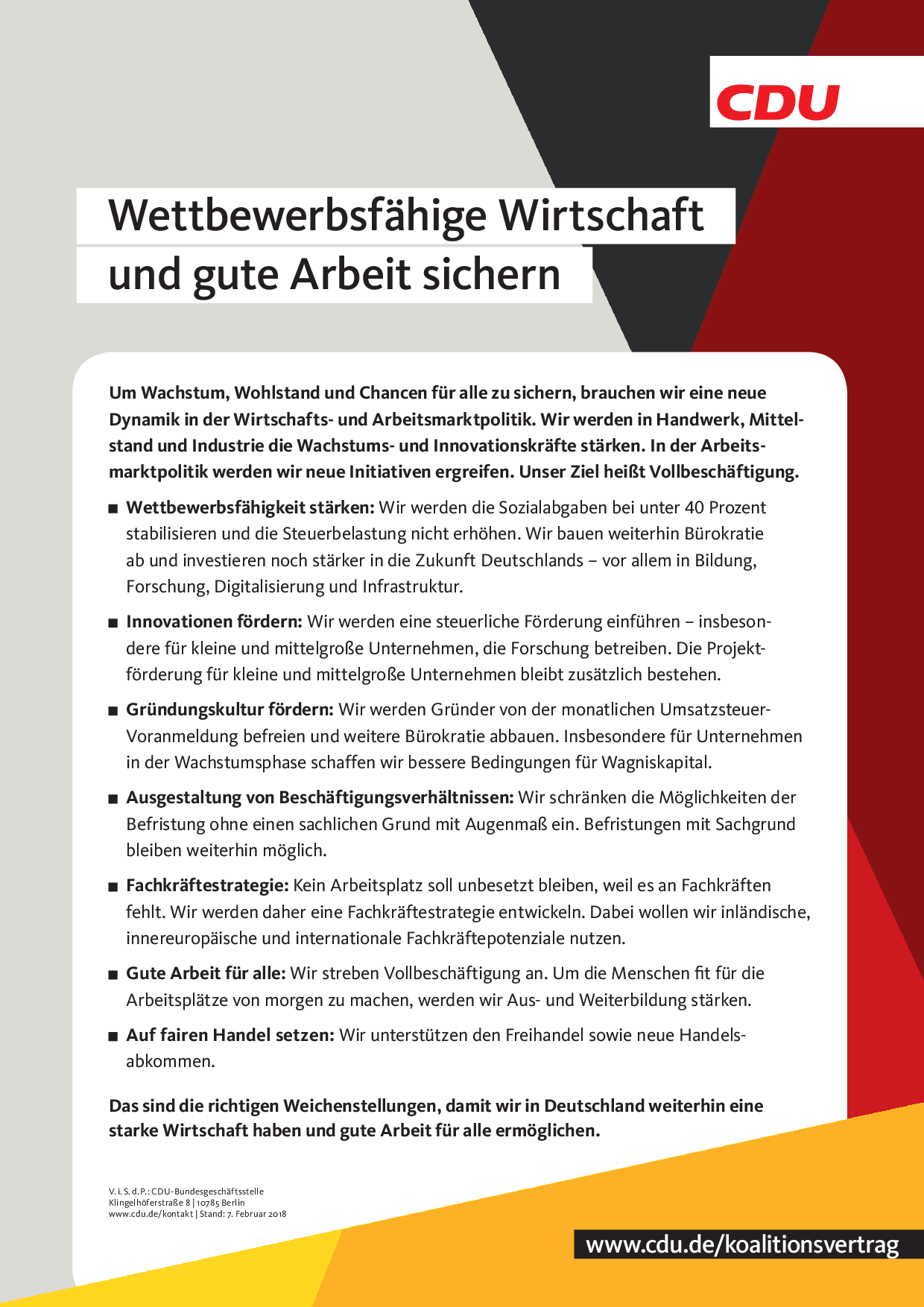 Wirtschaft – im Koalitionsvertrag 2018